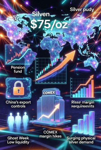 Silver smashing records above $75/oz! Driven by pension/ETF inflows, China's upcoming export curbs, COMEX margin hikes squeezing shorts, Ghost Week thin liquidity volatility, surging physical demand & global supply pressure. Bull run intact?