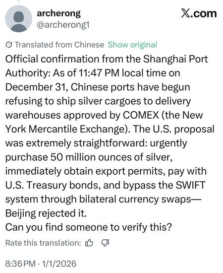MOST PEOPLE HAVE NO IDEA WHY SILVER WENT PARABOLIC IN 2025 TO BEGIN WITH. CHINA'S EXPORT RESTRICTIONS ON #SILVER THAT BEGINS JANUARY 1ST, 2026 WILL FINALLY BREAK THE FAKE COMEX/LBMA PAPER DERIVATIVE MARKET.