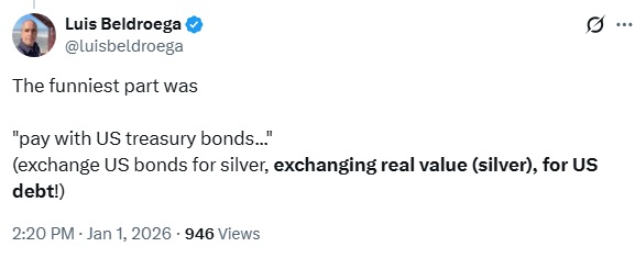 Comment: 6th Jan 2026 | I have been thinking of providing an update on the Asian Guy AI videos for a few days because there are too many reports of events taking place that are not immediately substantiated by other silver bloggers. A wild example being that JP Morgan missing a margin call. Personally, I think the AG AI has been cloned (now AG AI2) and it's handlers are now deliberately putting out misinformation on multiple channels. I think the older videos are still most likely to be accurate, in terms of explaining how the silver market operates.
