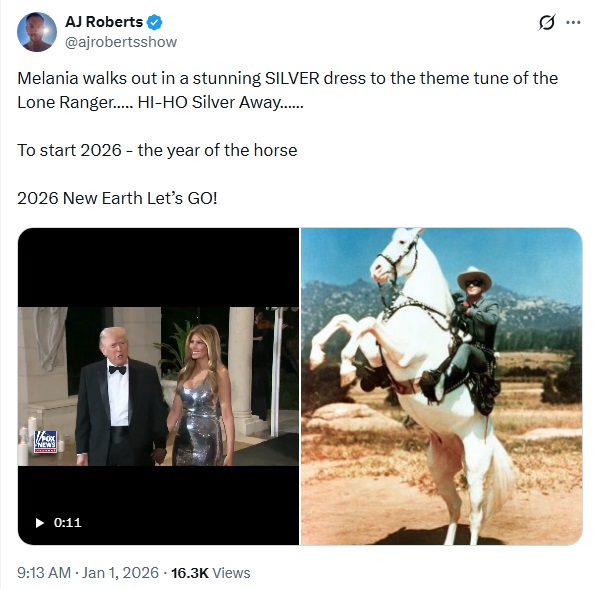 Comment: Some serious COMMS? Again Trump is talking about 'Peace On Earth' at Mar-a-Lago New Year’s Eve bash .... When the banks blow up, there will me 'Peace On Earth'....I chose this post because the video was better quality than others, but we also get a reminder that this is 'The Year of the Horse'. This is important as the silver price is going to gallop!