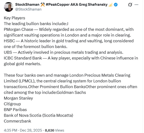 📢 This anonymous source has gone viral, posting relentlessly about COMEX, the LBMA, and imminent shortages.