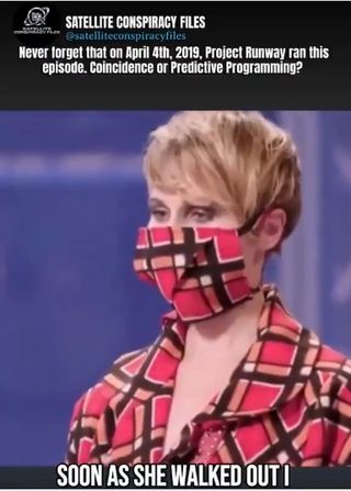 Never forget that in April 2019, Project Runway ran an episode featuring a masked model named Kovid. (21 seconds