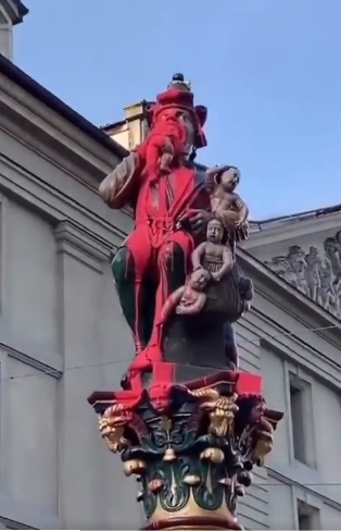 People are throwing paint on the statue of Saturn (Cronus) devouring his children in Switzerland.