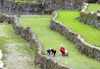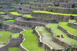 The Huanglong (Yellow Dragon) Travertine Terraces stretch along the hillside for 3.5 kilometres. The broken pools owe their existence to limestone dissolved in water.
