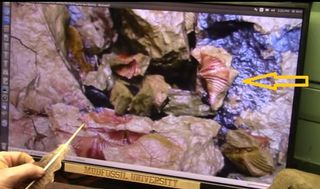 Comment: Here, the last video captured from the water reveals striking horizontal layering. Some of this is white and other parts are very fleshy coloured.