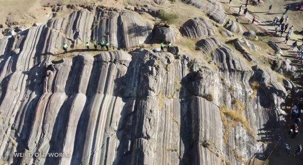 Comment: Apparently, the official explanation is that the orange and black ring pattern was caused by water and algae creating the dark hues.... I think this explanation is absolutely ridiculous. See YT video 15 UNUSUAL Geological Wonders