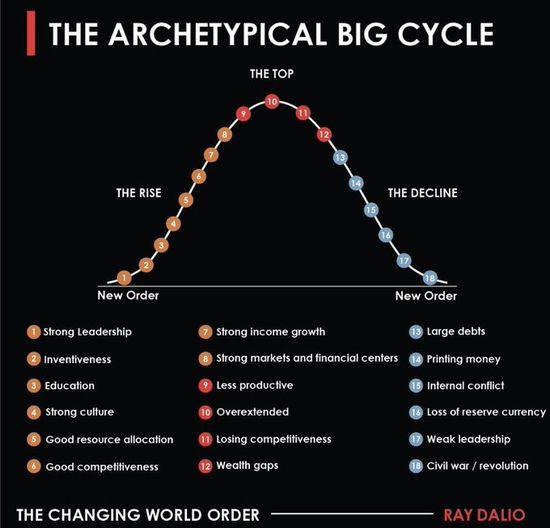 Ray Dalio has nicely mapped out the final phase of a long-term cycle in his book "Principles for Dealing with the Changing World Order: Why Nations Succeed and Fail".
