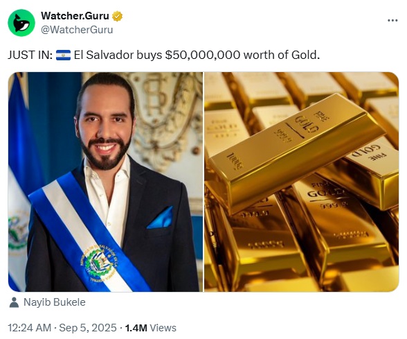 JUST IN: 🇸🇻 El Salvador buys $50,000,000 worth of Gold.
