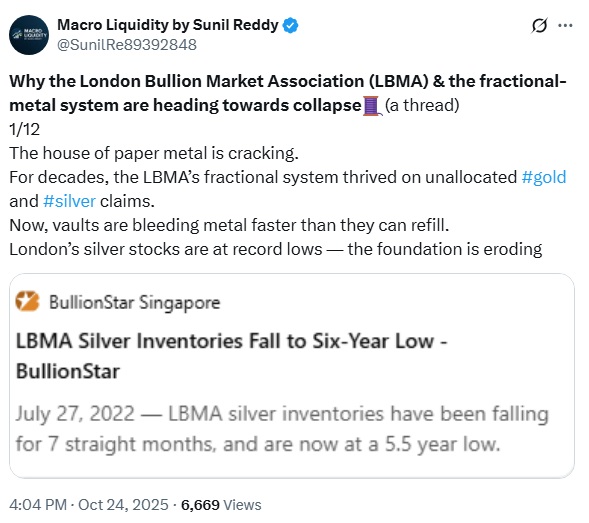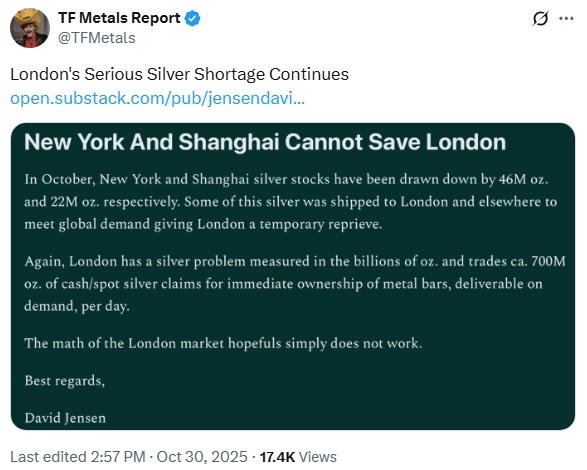 #Silver is now back in backwardation (LBMA spot vs COMEX futures). | XTwitter