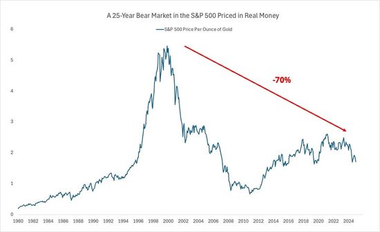 In real-money terms, the S&P 500 has lost 70% of its value in the last 25 years