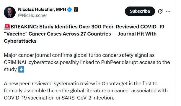 🚨BREAKING: Study Identifies Over 300 Peer-Reviewed COVID-19 "Vaccine" Cancer Cases Across 27 Countries — Journal Hit With Cyberattacks