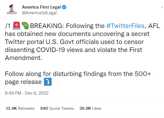 Comment: The Twitter Files have been a revelation, but the Twitter FILES ON COVID ARE A MUST READ! TWITTER v1.0 WAS A JOKE! THE EFFORTS AT CENSORSHIP ARE AN EMBARRASSMENT... BANNING WORLD CLASS EXPERTS BECAUSE YOUR AI/CHEAP FOREIGN LABOUR ARE NOT UP TO THE JOB. WHAT A SHITSHOW.... a F(*&^%NG DISGRACE!! There is more to come, but the so called "conspiracy theorists" have been proven right YET AGAIN..... Left wing "believers" must be in a world of hurt right now.... They can no longer pretend... We all know that they have been conned.