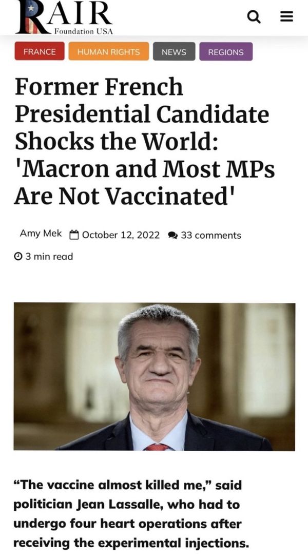 Comment: I suppose it's not suprising as we know that leaders in other countries knew the consequences and only took a placebo. There have been 'mistakes' like Governor of California Gavin Newsom, (he died and an actor took over his job). Regardless, this is another revelation that will hit the sleeping masses hard. This is another video dubbed in English about this same story on Telegram link
