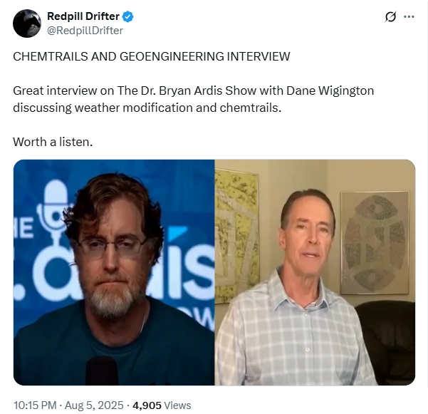Great interview on The Dr. Bryan Ardis Show with Dane Wigington discussing weather modification and chemtrails.