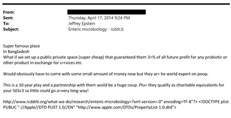 wrote to Epstein enthusing that their “horny virus hypothesis” could be correct. He claimed that he’d come up with a study “directly linking sexual behavior and microbial diversity,” and asked for Epstein’s thoughts about his “funding on this hypothesis.”