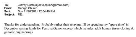 Comment: Epstein had some serious mad scientist friends. George Church kicked off a firestorm with his Neanderthal surrogate aspirations (see more below).