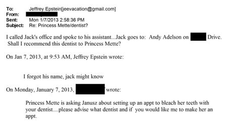 Princess Mette is asking Janusz about setting up an appt to bleach her teeth with