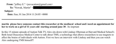 Comment: Obviously we don't know for sure whether this email was refering to the creation of a Trumpet Flower perfume. Yet, this email makes you wonder whether Epstein and Ariane de Rothschild were literally trying to keep up with the Jones and these perfumes were already being made for other buyers.
