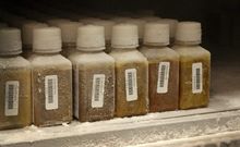 Robert K. Graham displays a container holding the sperm of one of his donors at his underground laboratory shown August 6, 1982 in Escondido, California