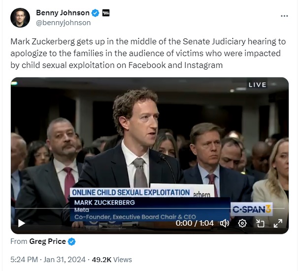 The CEOs of Meta, Snap, TikTok, X, and Discord faced intense questioning from senators about protecting children online, with Mark Zuckerberg forced to offer a direct apology to the families of victims who were harmed by social media. | CBS News link