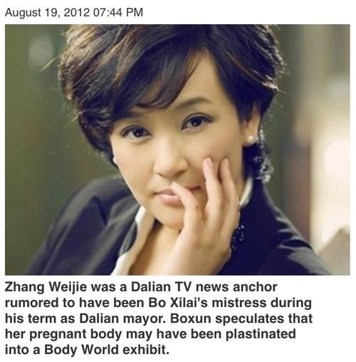 “A pregnant woman who has been plastinated and preserved for display as a Body Worlds exhibit is most likely the body of Zhang Weijie, a former Bo Xilai mistress who mysteriously vanished…”