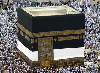 The Kaaba is the black cube-shaped mosque and stone building at the center of Islam's most important mosque and holiest site, the Masjid al-Haram in Mecca, Saudi Arabia. It is a place of pilgrimage.
