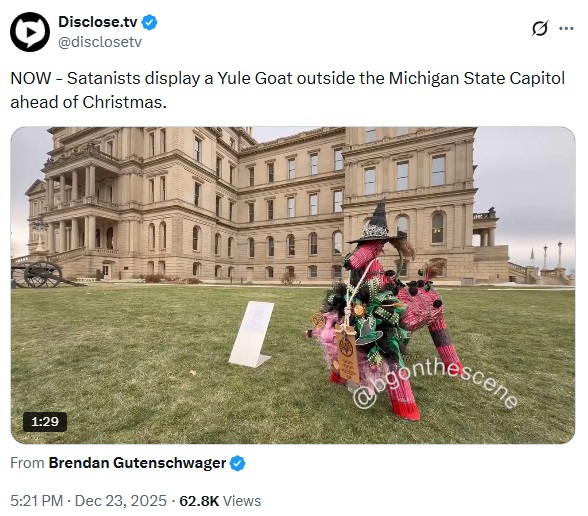NOW - Satanists display a Yule Goat outside the Michigan State Capitol ahead of Christmas.