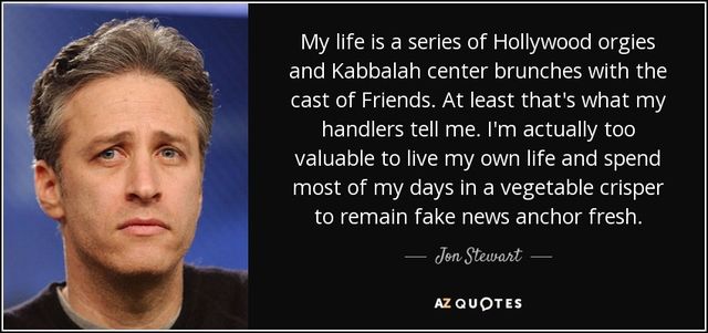 Comment: Jon Stewart is an American talk show host and wannabe comedian, actually that is unkind, see Wikipedia link.