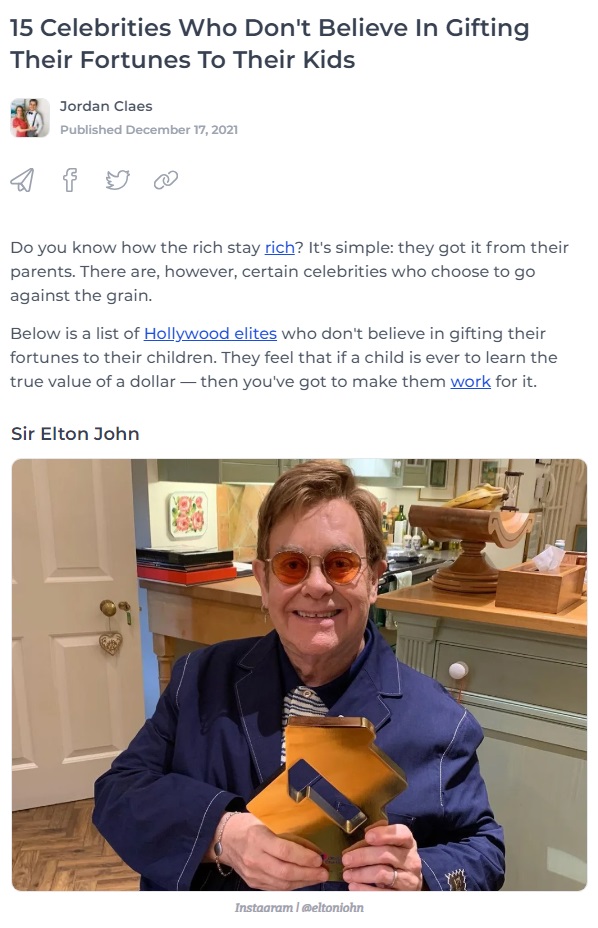 Below is a list of Hollywood elites who don't believe in gifting their fortunes to their children. They feel that if a child is ever to learn the true value of a dollar — then you've got to make them work for it.
