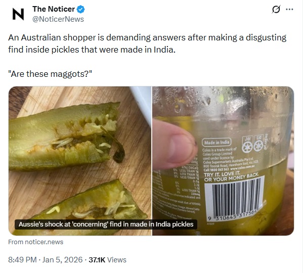 Aussie’s shock at ‘concerning’ find inside made in India Coles pickles