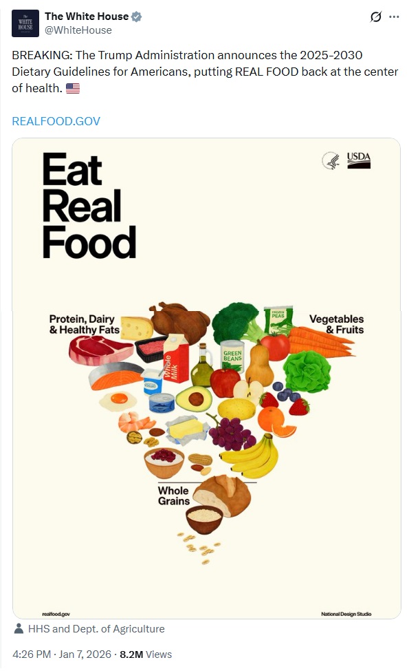 The new Dietary Guidelines for Americans defines real food as whole, nutrient-dense, and naturally occurring, placing them back at the center of our diets. | Realfood.gov Link