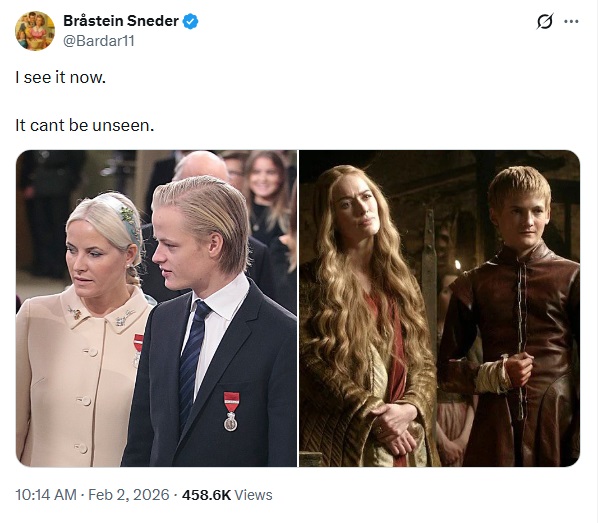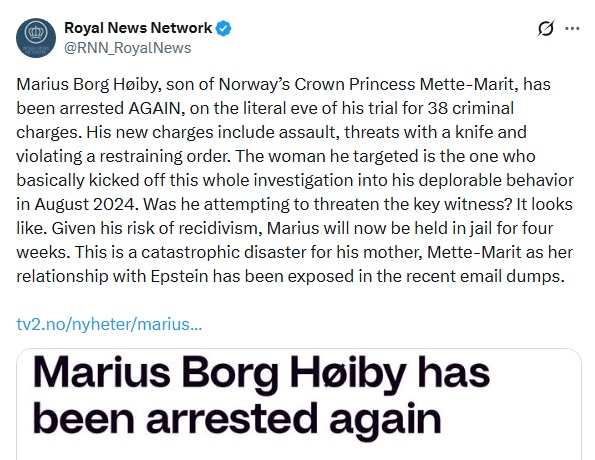 Historians called this "the biggest scandal in Norway's 120-year royal history." That was before the Epstein files showed his mother appears over 1,000 times, visiting his Palm Beach house, taking his parenting advice, having his staff arrange her flights and drivers. | XTwitter Link