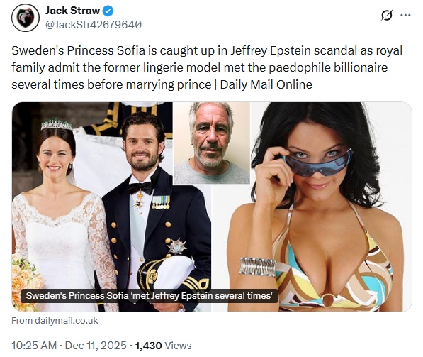 Sweden's Princess Sofia is caught up in Jeffrey Epstein scandal as royal family admit the former lingerie model met the paedophile billionaire several times before marrying prince
