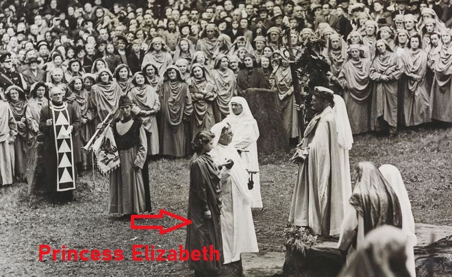 Comment: This is a young Princess Elizabeth at her initiation into a Welsh Druid Order in 1946 before her enthronement as Queen Elizabeth. Some claim the high priest is Aleister Crowley, but I can not find any proof that Crowley was ever a druid. Anyway, just in case you don't believe Queen Elizabeth II was in a cult, rare video and photos are easy to find on the Internet. Today, it is very important to realise that most people in high society are in cults and have always been in cults.