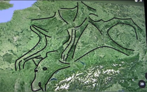 Comment: Tyson found a dragon north of the Alps in Europe. This is only 1 of 7 dragon titan carcasses pointed out using Google Earth.