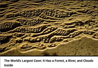 Comment: In the intro, Roger Spurr says this is meat! He explains where the wavy dark lines come from in the meat walls and the difference with the connective tissue that forms the roof of this cavern. At 3:30 he compares pork ribs to the 2nd walkway with lights image from the Khewra Salt Mine, Pakistan. Then he explains how this Titan flesh turned to salt. He says the salt comes from being close to a kidney that has leaked it’s natrium or natron (sodium and potassium mixture) which acts as a preservative.