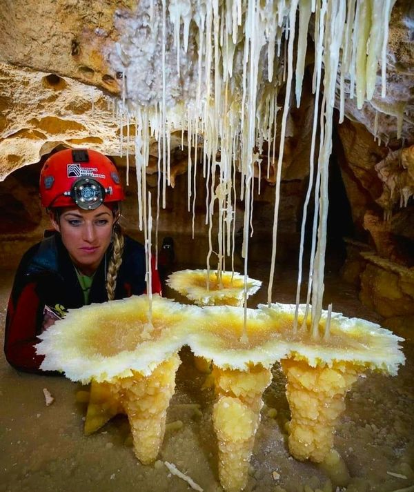 Stunning aragonite “Flowers” in a cave on Mallorca island, Spain.