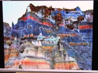 The first question is: why do we see banded rocks and where are the colours coming from? What is the cause? There is a scientific process that seems to explain where the colours are coming from and this will be mentioned in this section. The other important aspect to the preservation of Titan flesh is the presence of saline (salt) water. Simply, I would like to suggest that the combinations and permutations of these factors have created a world of wonder. The following truly amazing landscapes provide further insights into geology as hardened biology.