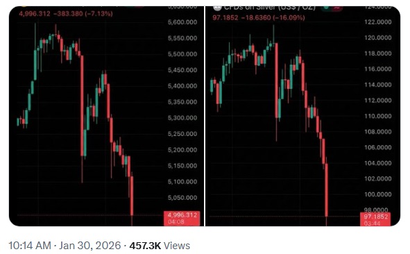 Comment: Eric Yeung is based in Hong Kong and due to his extensive contacts, knows whats really going on in the chinese PM market. Also: Prices of PM bars in dollars during the 30th Jan 2026 PM crash on China's largest e-commerce platform http://JD.com (gold bar equivalent to $5720.79/oz, and the silver bar is equivalent to $163.35/oz) Link.