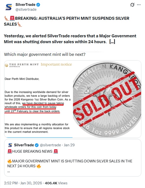 🦘🚨BREAKING: AUSTRALIA'S PERTH MINT SUSPENDS SILVER SALES🦘