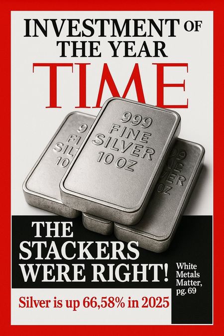 Comment: I presume this is a fake TIME front cover, but the sentiment and silver price increase is just about right (depending on currency). Btw, the bankers are naked shorting silver in desperation, so who knows what the price will become when they are forced to give up. Many believe the death trap for bullion bankers is coming soon.... This will be when there is a failure to deliver real physical silver for a BIG customer and opinions do vary as to how that will be handled.