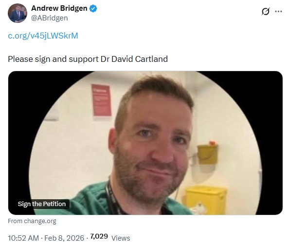 Comment: This is UK Dr David Cartland sharing his devastating news. This video has got 1.2 million views in less than 3 days.
