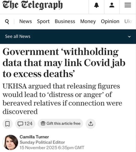 A couple of days ago, it was reported in the Telegraph that the UK government is suppressing vital data on the Covid vaccine being linked to excess deaths. Today on the 17th of November, the Independent are reporting there are blood clots being found in long Covid patients. Which we know long Covid was caused by the vaccines and other poisons.