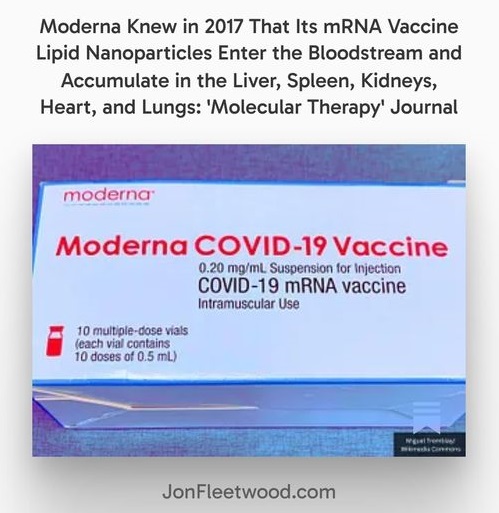 Moderna Knew in 2017 That Its mRNA Vaccine Lipid Nanoparticles Enter the Bloodstream and Accumulate in the Liver, Spleen, Kidneys, Heart, and Lungs: 'Molecular Therapy' Journal