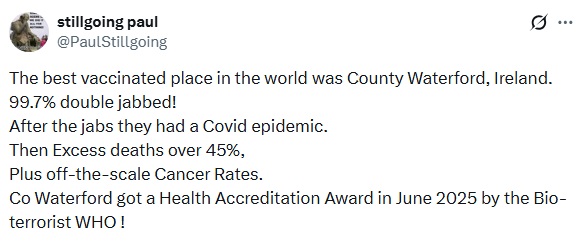 Comment: Most jabbed county in Ireland still gets a COVID epidemic, ridiculous excess deaths and new high cancer rates.