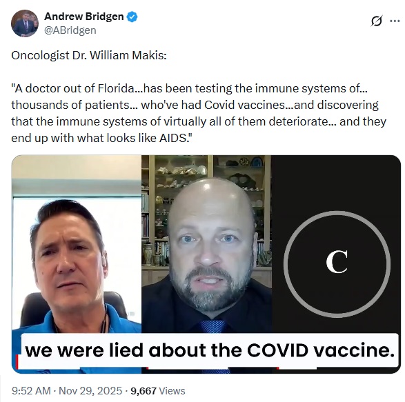 "A doctor out of Florida...has been testing the immune systems of... thousands of patients... who've had Covid vaccines...and discovering that the immune systems of virtually all of them deteriorate... and they end up with what looks like AIDS."