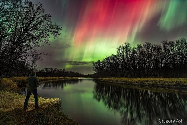 Crimson Auroras on the mighty Mississippi, November 11, 2025
