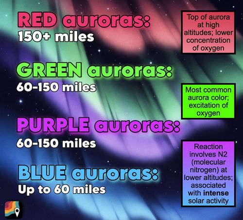 But if you see blue or purple, that’s a sign of something RARE! The intense solar activity is allowing energetic, charged particles to reach lower into the atmosphere (down to 60 miles above the ground). That’s something we usually only see with the strongest solar storms!
