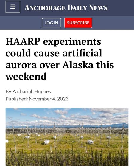 HAARP experiments could cause artificial aurora over Alaska this weekend