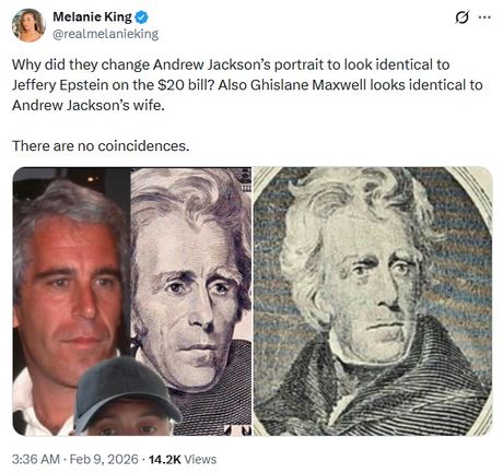 Why did they change Andrew Jackson’s portrait to look identical to Jeffery Epstein on the $20 bill? Also Ghislane Maxwell looks identical to Andrew Jackson’s wife.